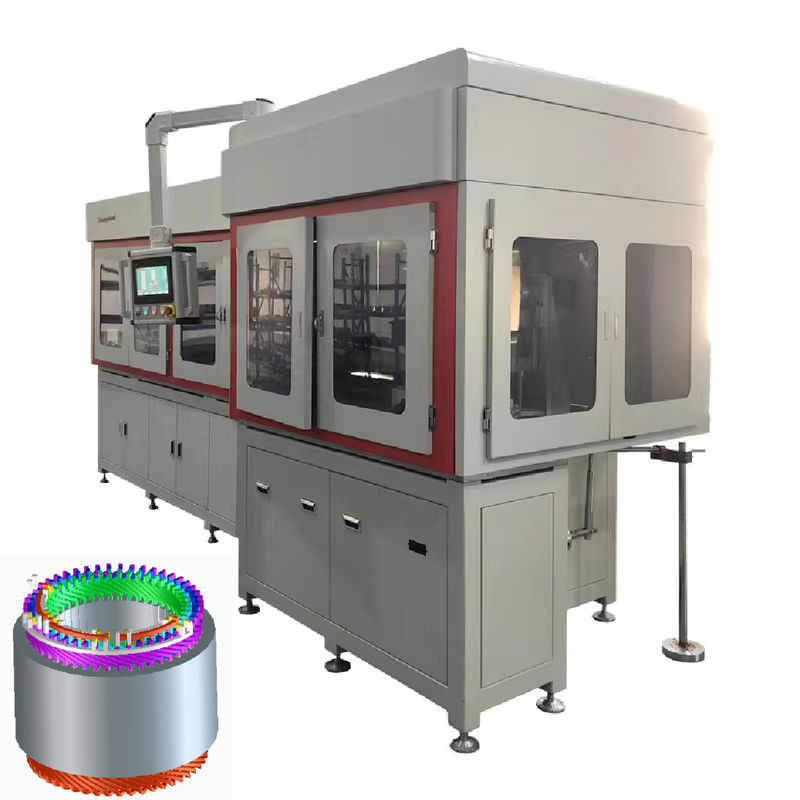 - Não.- Não.OMáquina de enrolar pinos de cabelo totalmente automatizada com avançado servo-cam corte e opcional laser de pintura de descolagem tecnologias, esta máquina atinge uma precisão superior dentro de ± 0,10 mm.Com uma capacidade de 900-1200 PCS por hora e compatibilidade para tamanhos de fios de 1A máquina também possui sistemas automáticos de mudança de molde e descarga de material,Melhorar a produtividade e a consistência na fabricação de estator.
